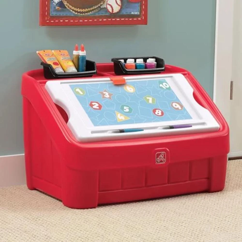 With this Step2 Toy Box & Art Lid, toddlers and preschoolers will love to clean their room. This unique toy chest also serves a creative art station where budding artists can draw and color. It will help children to get creative and organized! Made in USA.