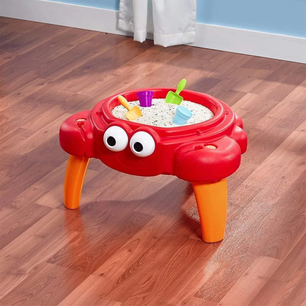 Enjoy all the fun of outdoor play with this Step2 Sand Table! Our friendly crab is all grown up and has new legs, which allows kids to take their sand play to a whole new level. Kids can use the shovels and buckets to build their very own sand castle. This children’s sand table includes a shell style lid to keep sand clean and dry. Made in USA.