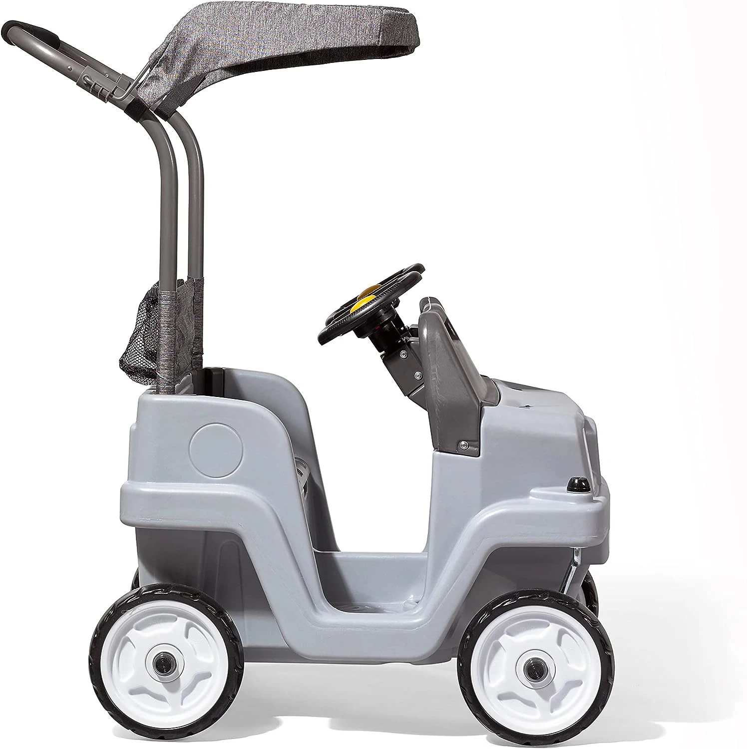 - QUIET AND EASY TO PUSH: Maneuver our toddler buggy push car with minimal effort using the wide handle with grip and easy-steer wheels. Taking your kids to run errands or to the park will be a breeze when you turn it into an imaginative activity where they can pretend to control the car.