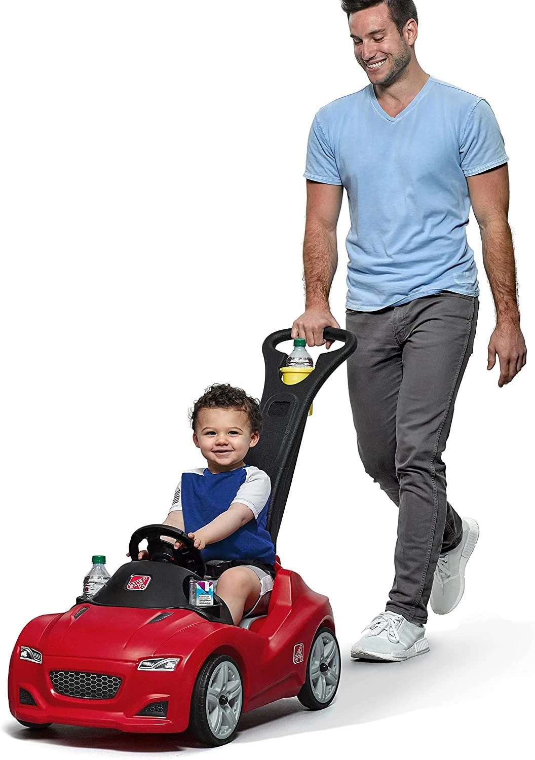 - REALISTIC DESIGN: This sleek ride on push car is unlike anything you’ve seen! It features a realistic car design, two cup holders for the rider and one for parent, plus under seat storage. Maximum weight for riding is 50 lbs.